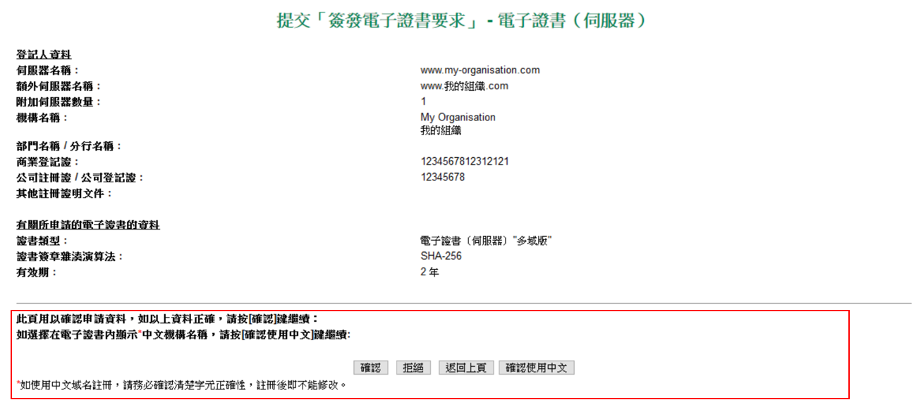 O-19 我可否申請一份顯示中文機構名稱的電子證書(伺服器)?